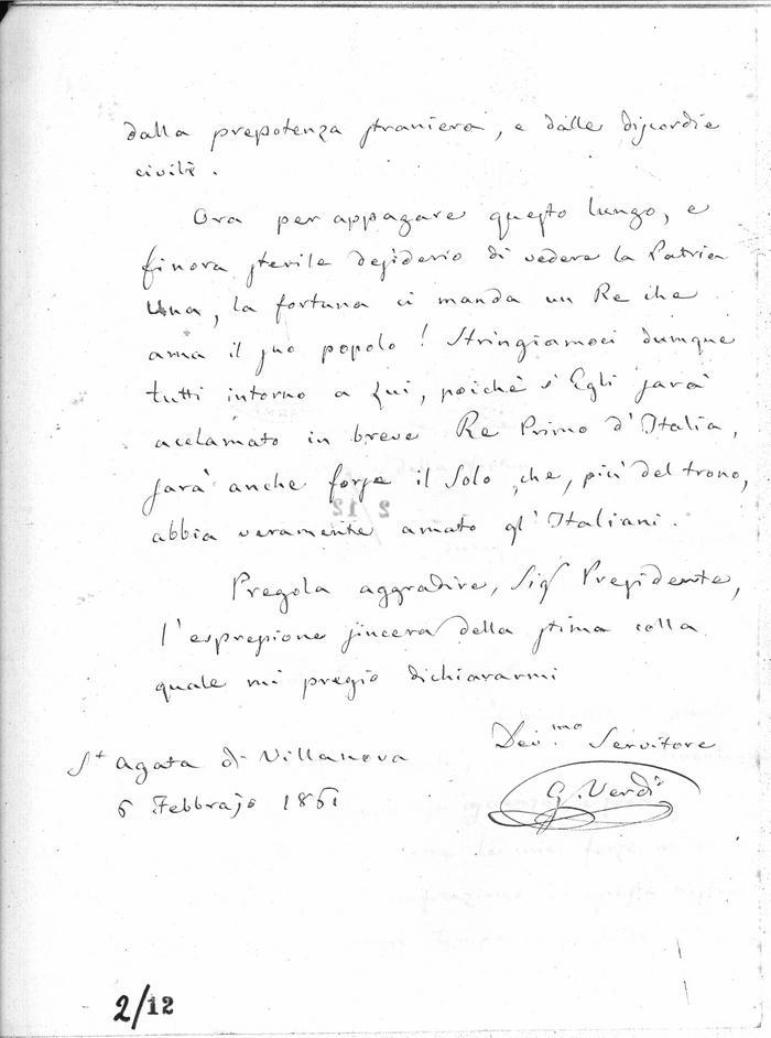 Giuseppe Verdi a Giuseppe Chiarpa, 06/02/1861