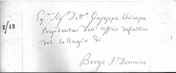 - All'Illmo signor Elettore / Giuseppe Chiarpa Presidente dell'Ufficio / definitivo del Collegio / di / Borgo San Donnino