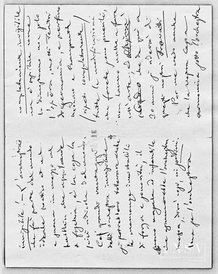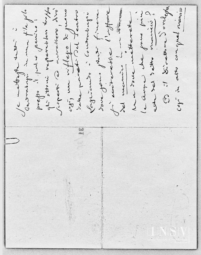 Lasciateli un po' dire, e Voi fate quello che dovete fare nei limiti del possibile Orchestra invisibile!... È un'idea tanto vecchia che tutti o almeno tanti hanno sognato! – Anch'io vorrei nei teatri l'Orchestra invisibile; ma non a metà... La vorrei completamente invisibile! – L'orchestra che fà parte del mondo ideale poetico, etc. etc. e suona in mezzo al pubblico che applaude o fischia, è la cosa la più ridicola del mondo. Coi grandi vantaggi dell'orchestra invisibile si potrebbero tollerare anche le mancanze inevitabili di forza e sonorità, il suono nasale ed infantile che assumerebbe l'orchestra messa, dirò così, coi sordini. Ma se l'orchestra completamente invisibile non e possibile come lo dimostrano non solo l'Opéra, molti Teatri di Germania, e perfino Monaco e Bayreuth (ripeto completamente) tutte le modificazioni che farete sono puerili non hanno nulla a fare coll'Arte; edmi pareohiméper mecredo che da qui a 30 anni si riderà di questi nostri Trovati. Per me credo anche che la Vostra Cassa Armonica sotto l'orchestra non giova a nulla. Vi sia o non vi sia la sonorità sarà la stessa.