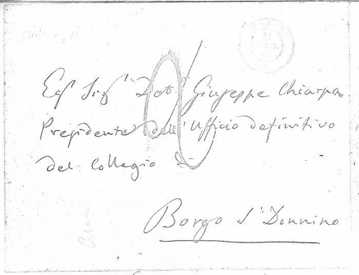 Egr Sigr Dotre Giuseppe Chiarpa / Presidente dell'Ufficio definitivo / del Collegio di / Borgo St<7sup> Donnino