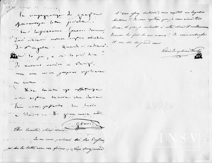 Noi lascieremo Genova domani, per ritirarmi nella nostra nicchia di St Agata. Quando ci vedremo: chi lo sa e chi lo può dire? Io contavo venire a Parigi, ma ora non saprei rischiarmi a nulla.
