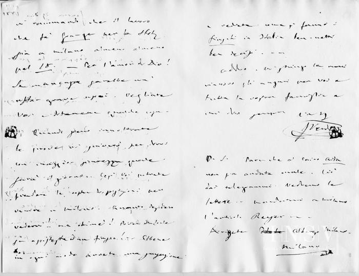 P. S. Pare che al Cairo Aida non sia andata male. Ciò dai telegrammi. Vedremo le lettere. Mandatemi a Milano l'articolo Reyer. - - -