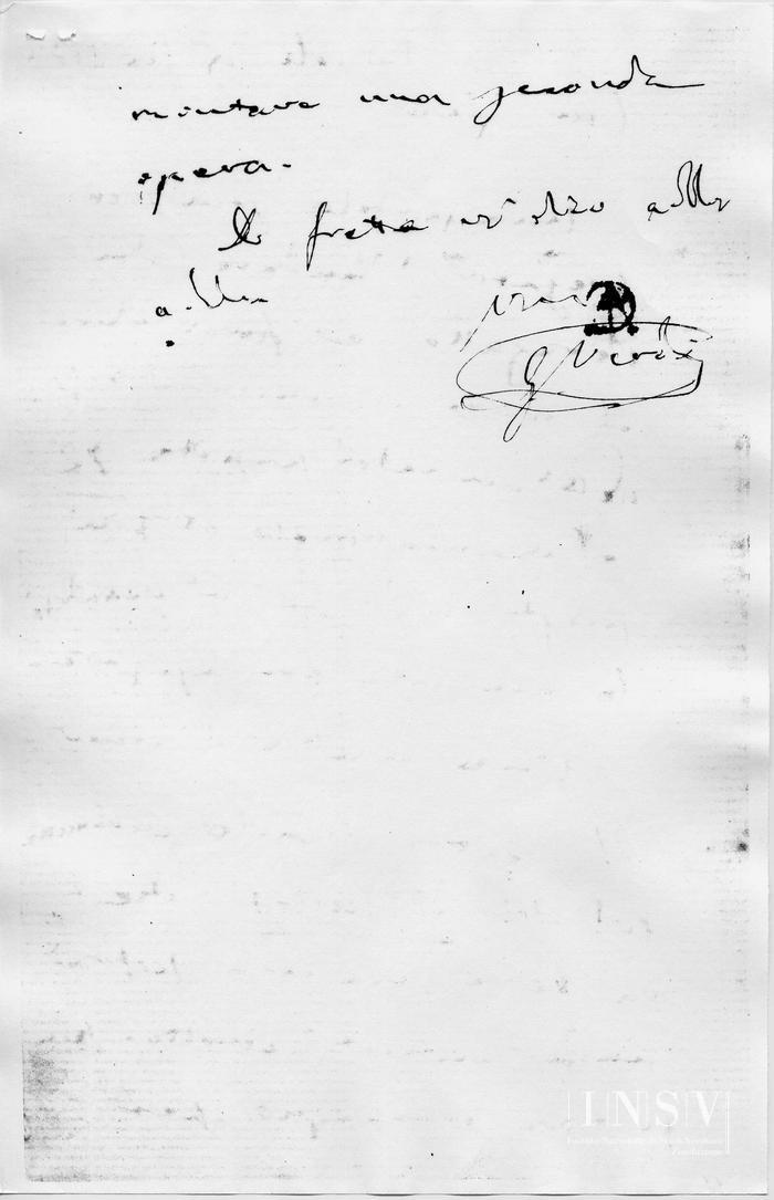 Un bifolio, una facciata e cinque righe scritte, con busta affrancata (40 cent.). Sulla prima facciata, in alto, a matita, di altra mano: «178.»; sul recto della busta, a matita, della stessa mano precedente: «178bis». Timbri dell'Archive de l'Opérra.