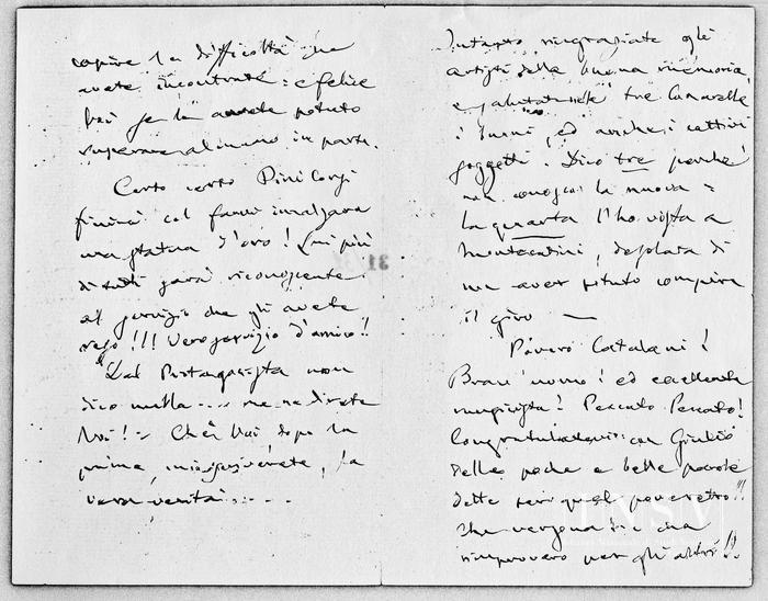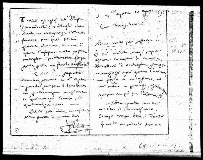 I miei ossequj all'Illustre Zanardelli: e ditegli che ricordo con riconoscenza l'ottenuto favore per quel povero giovine, che ora, in vece di esser Professore nella vostra orchestra, porterebbe forse sulle spalle un fucile austriaco!!!