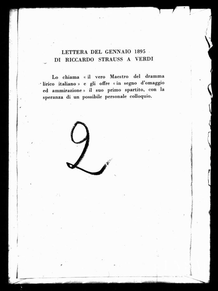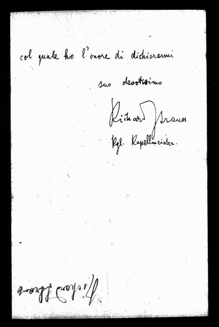 Un bifolio, due facciate e due righe scritte. Sulla terza facciata, in basso, di altra mano: «Richard Strauss».