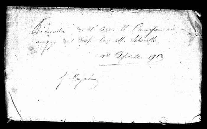Lettera contenuta in camicia archivistica, che contiene anche un foglio con appunto del secondo decennio del Novecento sulla sua non ancora avvenuta pubblicazione.