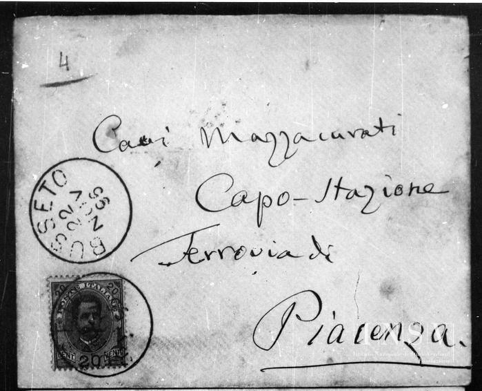 Un biglietto, una facciata scritta, con busta affrancata (20 cent.). Sul recto della busta, di altra mano: «4».