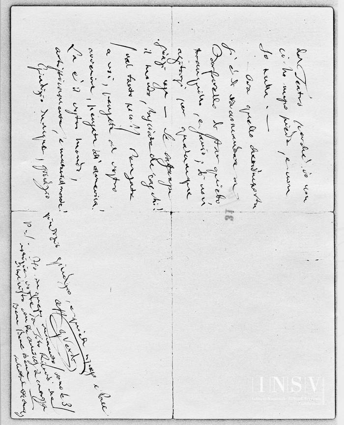 P.S. Ho in questo momento 8sono le 3) notizie vostre da Tito Ricordi che v'ha visto con De Amicis in carozza. Bene Bene Bene —