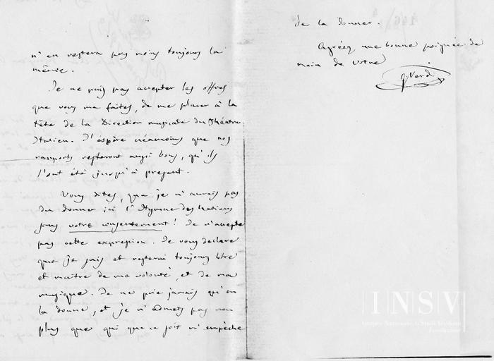 Je ne puis pas accepter les offres que vous me faites, de me placer à la tête de la Direction musicale du Théatre Italien. J'espère nèamoins que nos rapports resteront aussi bonns, qu'ils l'ont étè jousu'à present.