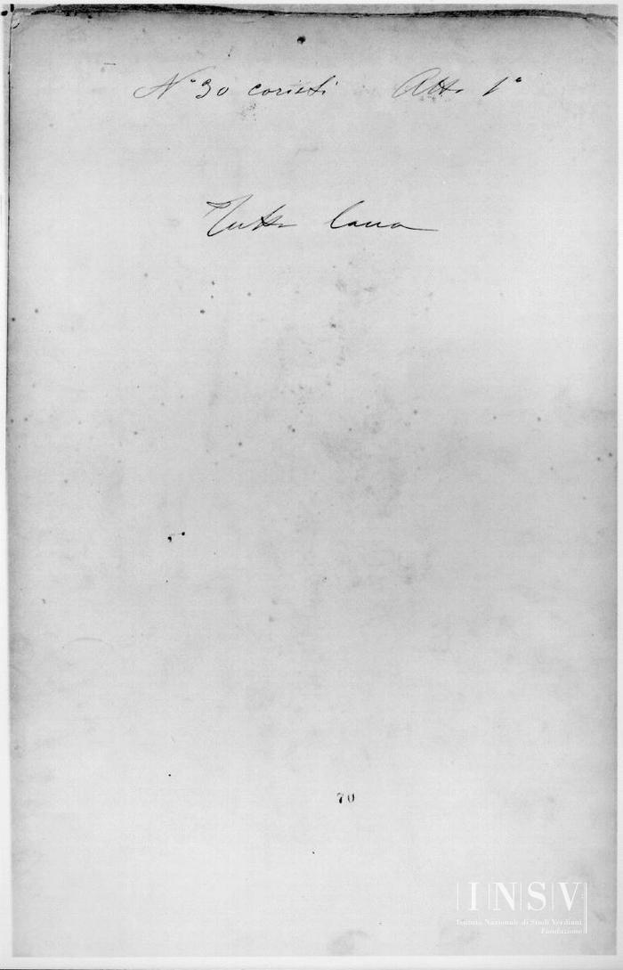 In alto a sinistra: «Boscaioli»; a destra: «26». In basso a sinistra: «Coro»; a destra: «Atto I°». Firmato sotto il figurino a destra. Timbro dell'Archivio storico Ricordi. Sul verso: «N° 30 Coristi Atto I° / Tutto lana». Aggiunto al riordino archivistico: «47» entro circoletto; sotto, a stampa: «70».
