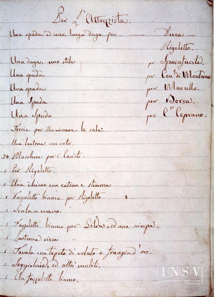 Taccuino di attrezzeria scenica per Rigoletto