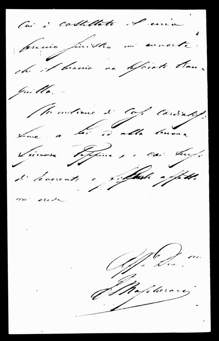 Un milione di cose cordialissime a Lei ed alla buona Signora Peppina, e coi sensi di reverente e filiale affetto mi creda