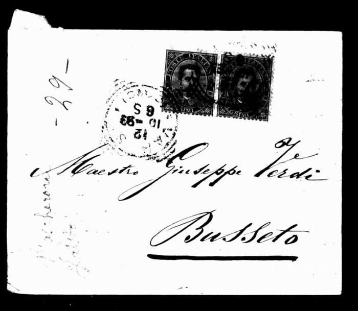 Tre bifolii, dodici facciate scritte, con busta affrancata (40 cent.). Sulla busta, di altra mano: «-29-»; «Mascheroni / saluto».