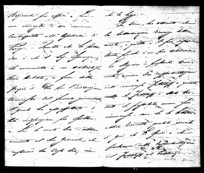 E non risposi subito per poterle dar conto dell'inchiesta che ho fatto in riguardo alla sottoscrizione Nazionale per apporre a Lei una medaglia d'oro come contrapposto all'Apoteosi di Parigi. – Quello che ho potuto dire è che il Sig. Speranza, che veramente è un distintissimo Artista, è fuori della Grazia di Dio per l'indiscrezione commessa dal famoso giornalista, il quale ha approfittato di tale indisposizione per spillare a Lei le venti lire d'abbonamento al suo giornale, che nessuno sa cosa sia, né chi lo legga. –