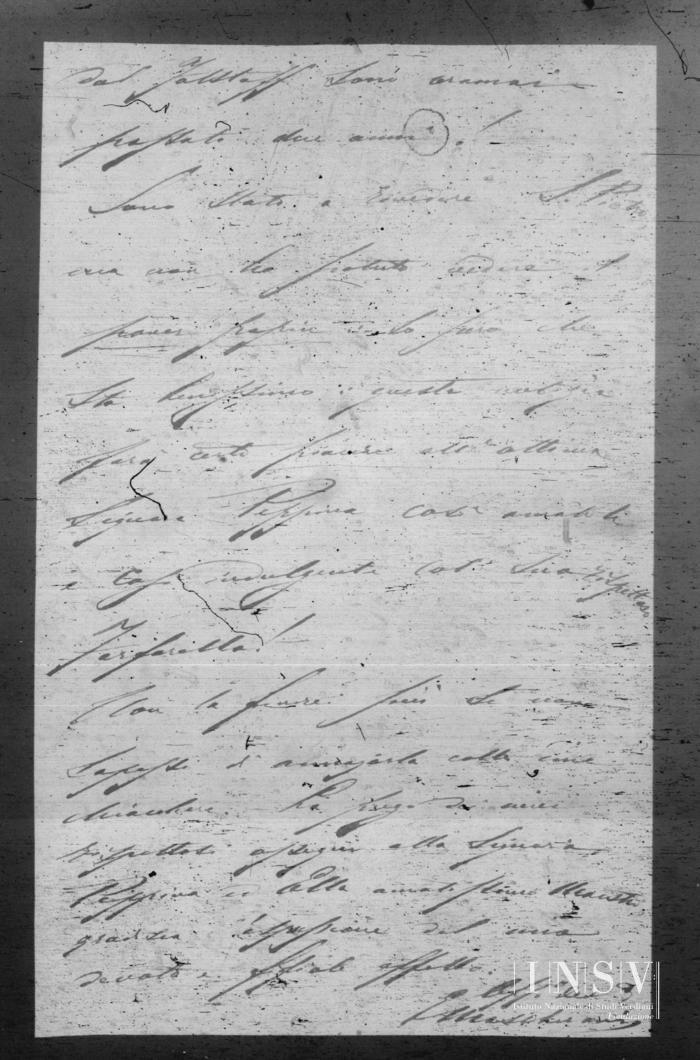 Sono stato a rivedere S. Pietro ma non ho potuto vedere il pover papino. Io spero che stia benissimo; questa notizia farà certo piacere all'ottima Signora Peppina così amabile e così indulgente con suo rispettoso Farfarello! –