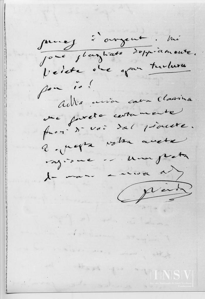 Addio mia cara Clarina che sarete certamente fuori di voi dal piacere. E questa volta avete ragione. Una stretta di mano e ancora addio