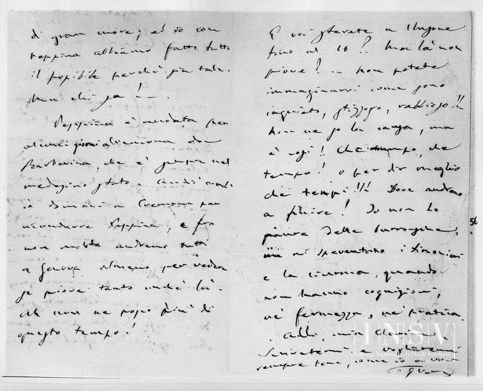 Peppina è andata per alcuni giorni a Cremona da Barberina, che è sempre nel medesimo stato. Andrò anch'io domani a Cremona per ricondurre Peppina, e fra non molto andremo tutti a Genova almeno per vedere se piove tanto anche là. Ah non ne posso più di questo tempo!