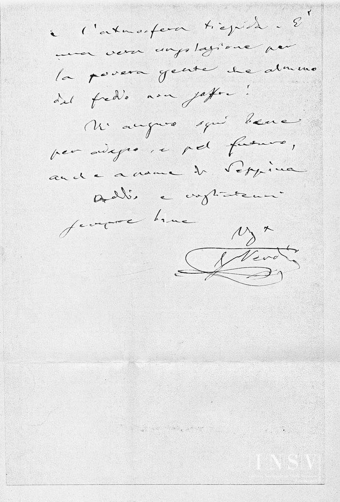 Nulla qui vi è di nuovo, se non che da due o tre giorni vi è un sole splendido e l'atmosfera tiepida. È una vera consolazione per la povera gente che almeno dal freddo non soffre!