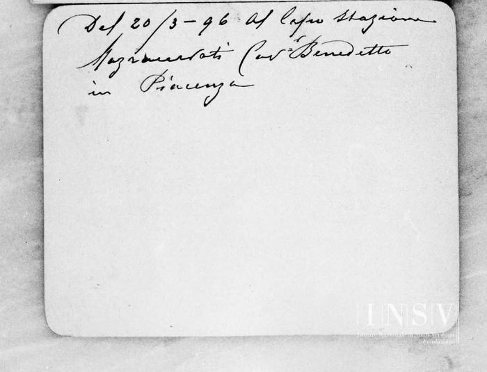 Le fotocopie in possesso Insv associano per errore questo biglietto alla busta del biglietto di Verdi a Mazzacurati del 21 dicembre 1896, e viceversa.