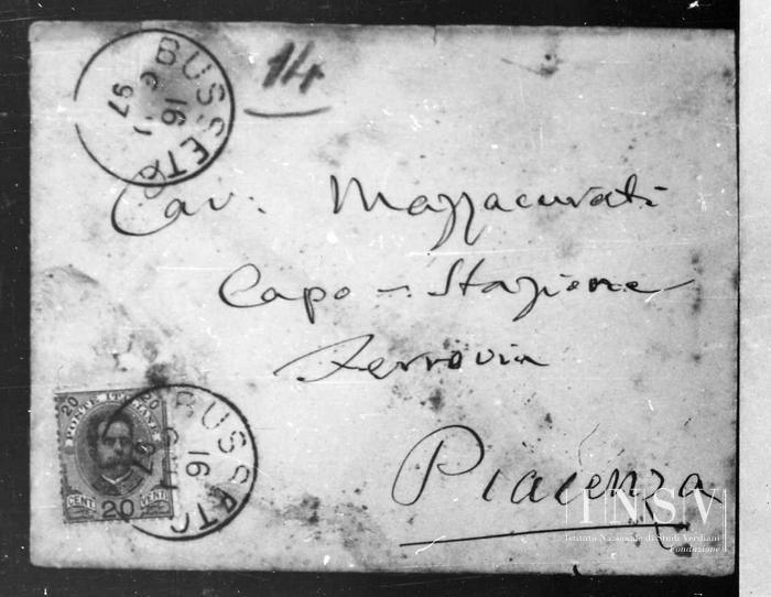 Un bifolio, una facciata scritta, con busta affrancata (20 cent.). In basso a destra, su etichetta: «V / 22 a». Sul recto della busta, di altra mano: «114».