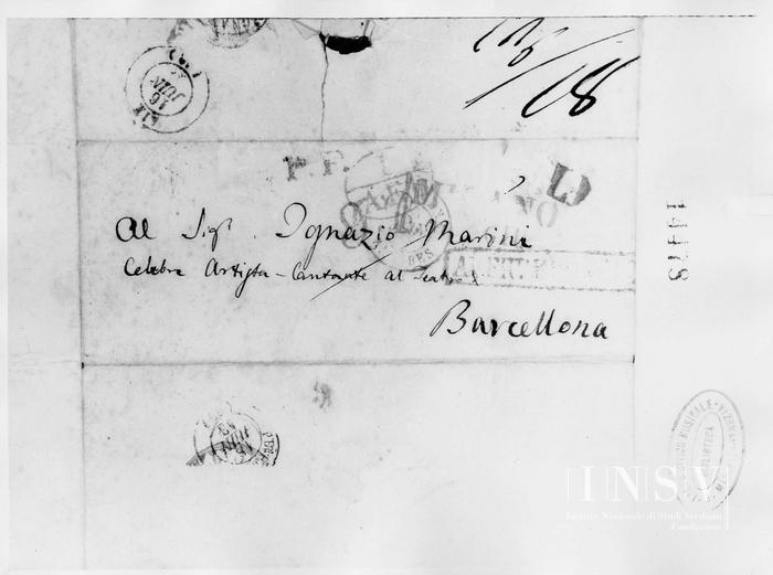 Al Sigr. Ignazio Marini / Celebre Artista - Cantante al Teatro di / Barcellona