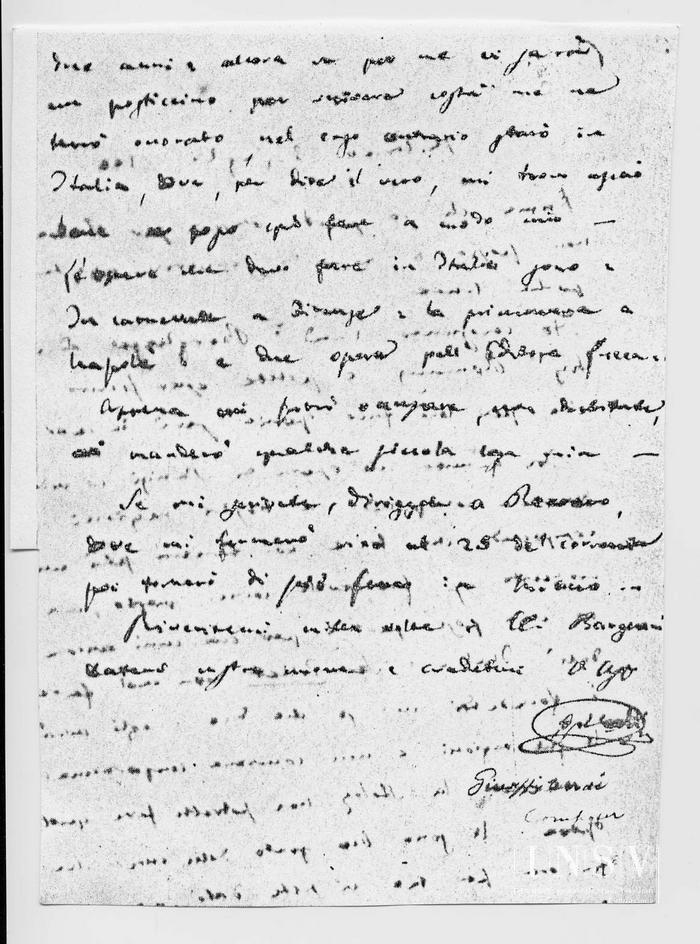 Le opere che devo fare in Italia sono: in carnevale a Firenze; la primavera a Napoli e due opere pell'Editore Lucca. Appena mi potrò occupare, non dubitate, vi manderò qualche piccola cosa mia. Se mi scrivete, diriggete a Recoaro, dove mi fermerò sino al 25 del corrente, poi ritornerà di piè fermo in Milano.