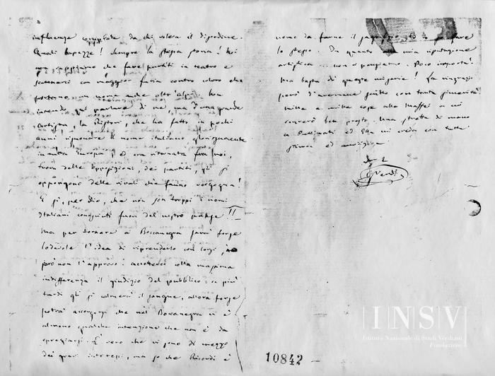 Stava per rispondere alle cortesi di Lei parole scrittemi nella lettera della Maffei, quando mi giunse la sua del 20 gennaio in cui mi parla della seconda e terza recita del Boccanegra. Non m'hanno mai sorpreso i scandali in teatro e, come scrissi a Ricordi, a 26 anni conobbi cosa significava pubblico. Da quell'epoca in poi i successi non m'hanno mai fatto montare il sangue alla testa, ed i fiaschi non mi hanno mai scoraggiato. Se ho continuato in questa mal'augurata carriera si è perché a 26 anni era troppo tardi per fare altra cosa, e perché non avevo fisico abbastanza robusto per tornare a' miei campi.